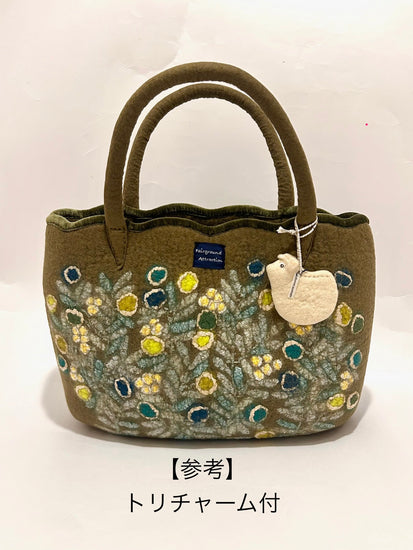 もともと、石鹸水で制作しているので、雨にあたって形が崩れることはありません。 羊毛は摩擦に弱いので、使い始めは若干の毛羽立ちができますが、小さな毛玉でも手で引っ張らず、ハサミでカットして下さい。汚れた場合は、手洗いなど水洗いもできますが、起毛しているので、汚れは目立ちにくいです。経年変化で羊毛がだんだんと固く締まって、その風合いもお楽しみいただきたいと思いますが、気になる方はご相談ください。持ち手などのパーツを外して、水洗いが可能です。上質な羊毛を使用しているので、シーズンオフで押入れなどに仕舞われる時は、防虫剤と一緒に保存袋に入れて保管して下さい。
