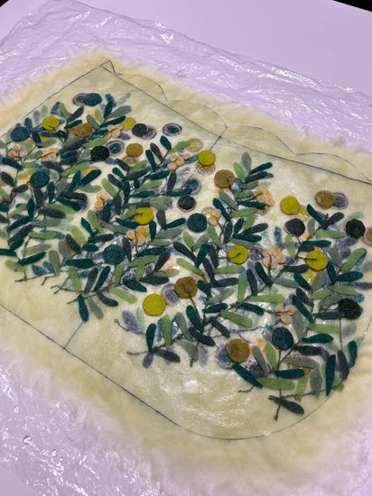 2026年 日本橋三越で開催される企画展、インテリア茶箱展(chabako-LAB)に出品する模様に合わせた、オリーブをモチーフとした模様になります。