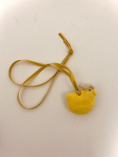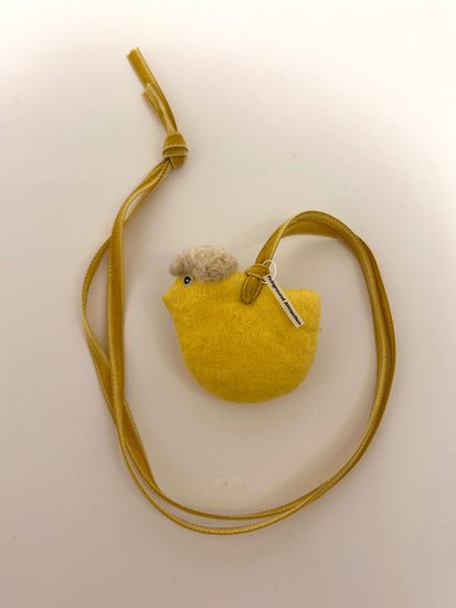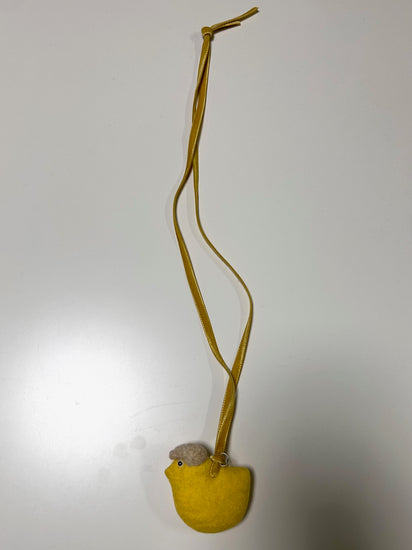 縫い目がない1枚フェルトで製作した、トリ形のネックレス。パンパンコロコロです。