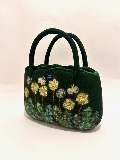 もともと、石鹸水で制作しているので、雨にあたって形が崩れることはありません。 羊毛は摩擦に弱いので、使い始めは若干の毛羽立ちができますが、小さな毛玉でも手で引っ張らず、ハサミでカットして下さい。汚れた場合は、手洗いなど水洗いもできますが、起毛しているので、汚れは目立ちにくいです。経年変化で羊毛がだんだんと固く締まって、その風合いもお楽しみいただきたいと思いますが、気になる方はご相談ください。持ち手などのパーツを外して、水洗いが可能です。上質な羊毛を使用しているので、シーズンオフで押入れなどに仕舞われる時は、防虫剤と一緒に保存袋に入れて保管して下さい。